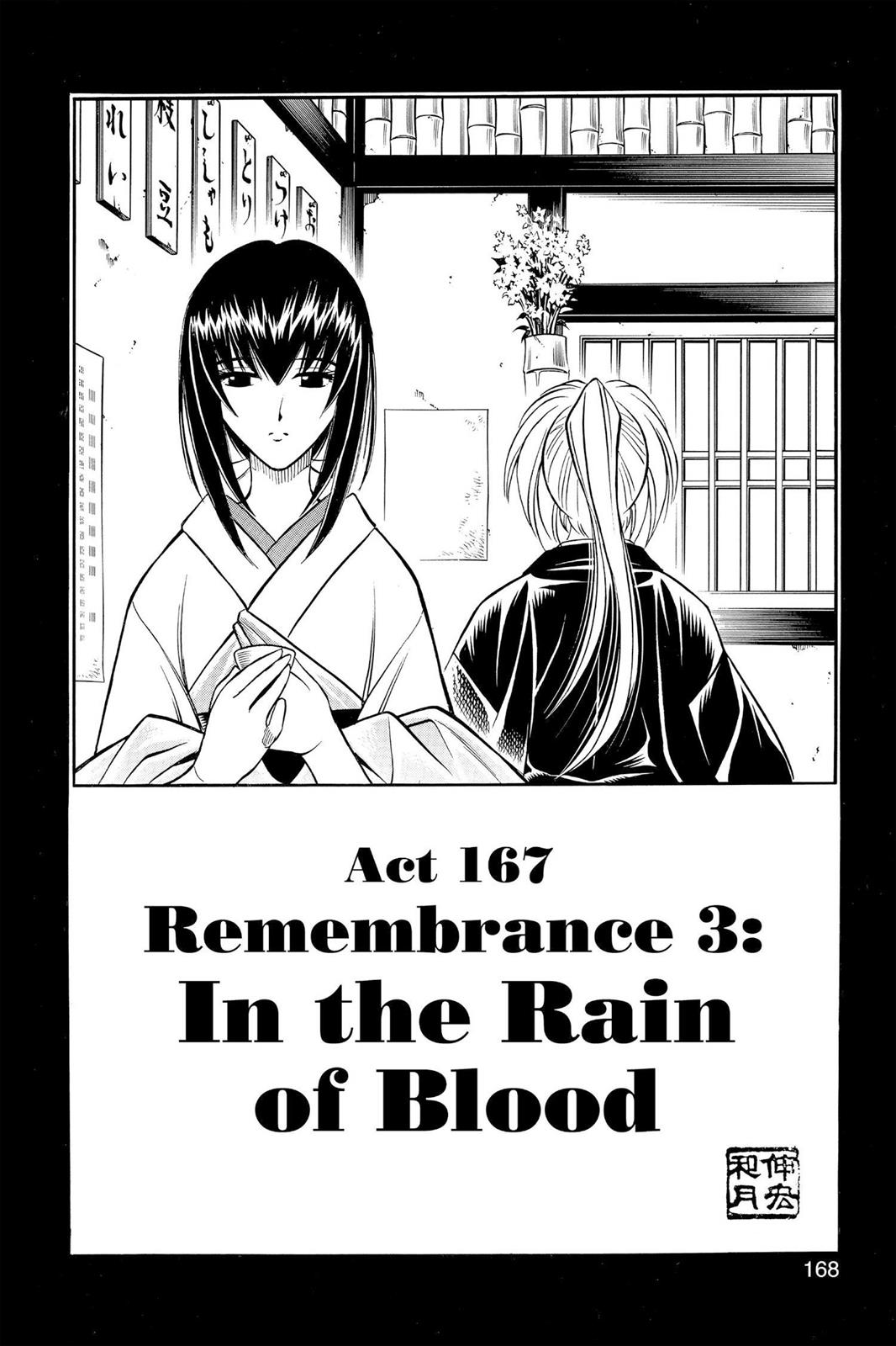 Remembrance 3: In the Rain of Blood is the one hundred sixty-seventh chapter of the Rurouni Kenshin manga.